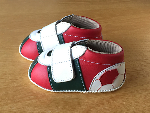 ちなみに今回のオーダーはサッカーチーム関係者の方から所属選手へのお祝いでしたが、例えば「ジャイアンツのファンだから、ジャイアンツカラーにマークも入れて!」といったご希望には沿えません。当店が勝手に公式グッズのようなものを製作・販売しているとみなされると問題になりますし、赤ちゃんの大切な人生最初の靴にそんな問題が絡んでしまったら悲しいですよね。